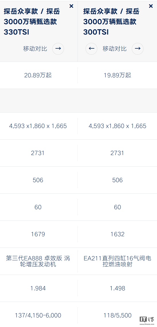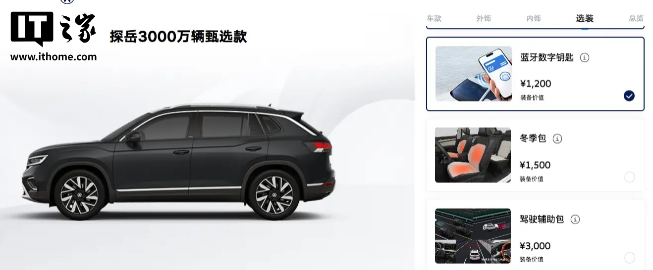 IT之家 10 月 4 日消息,大众探岳 3000 万辆甄选款现已上市,整体外观设计和现款探岳没有很大区别,主打纪念大众全球下线 3000 万辆 SUV策略资本,共有 2 款车型,官方指导价 19.89 万元起,与 2025 版探岳众享款起售价相同。